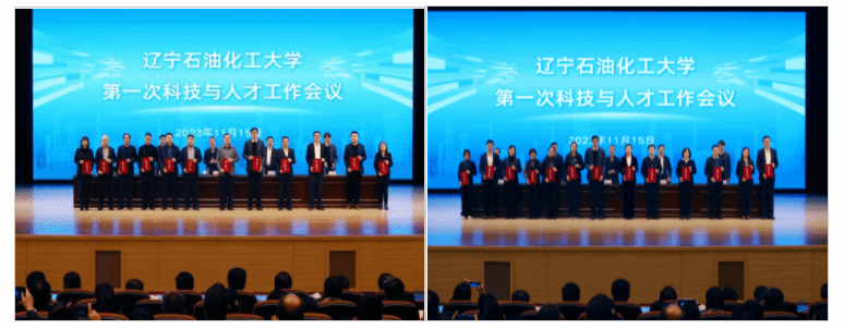 校领导为获奖先进单位代表和先进个人颁发奖牌和荣誉证书。科研处处长张庆民、人事处处长吴小康分别作了学校科研和人事政策解读。